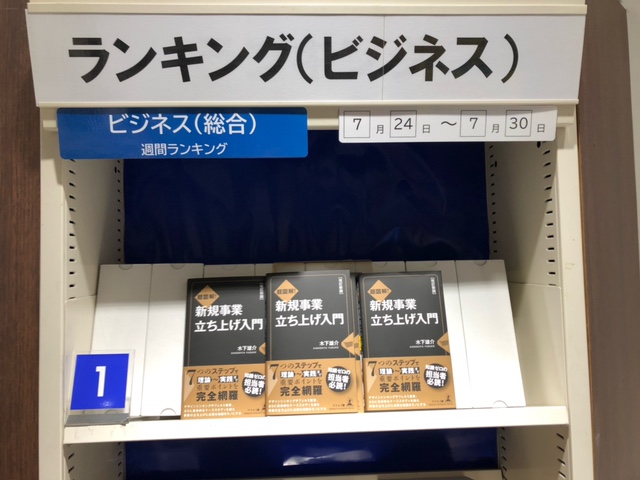 拙著「改定新版 超図解!新規事業立ち上げ入門」がブックファースト新宿店でベストセラーランキング第1位を獲得(ビジネス部門)(7/24~7/30調べ)