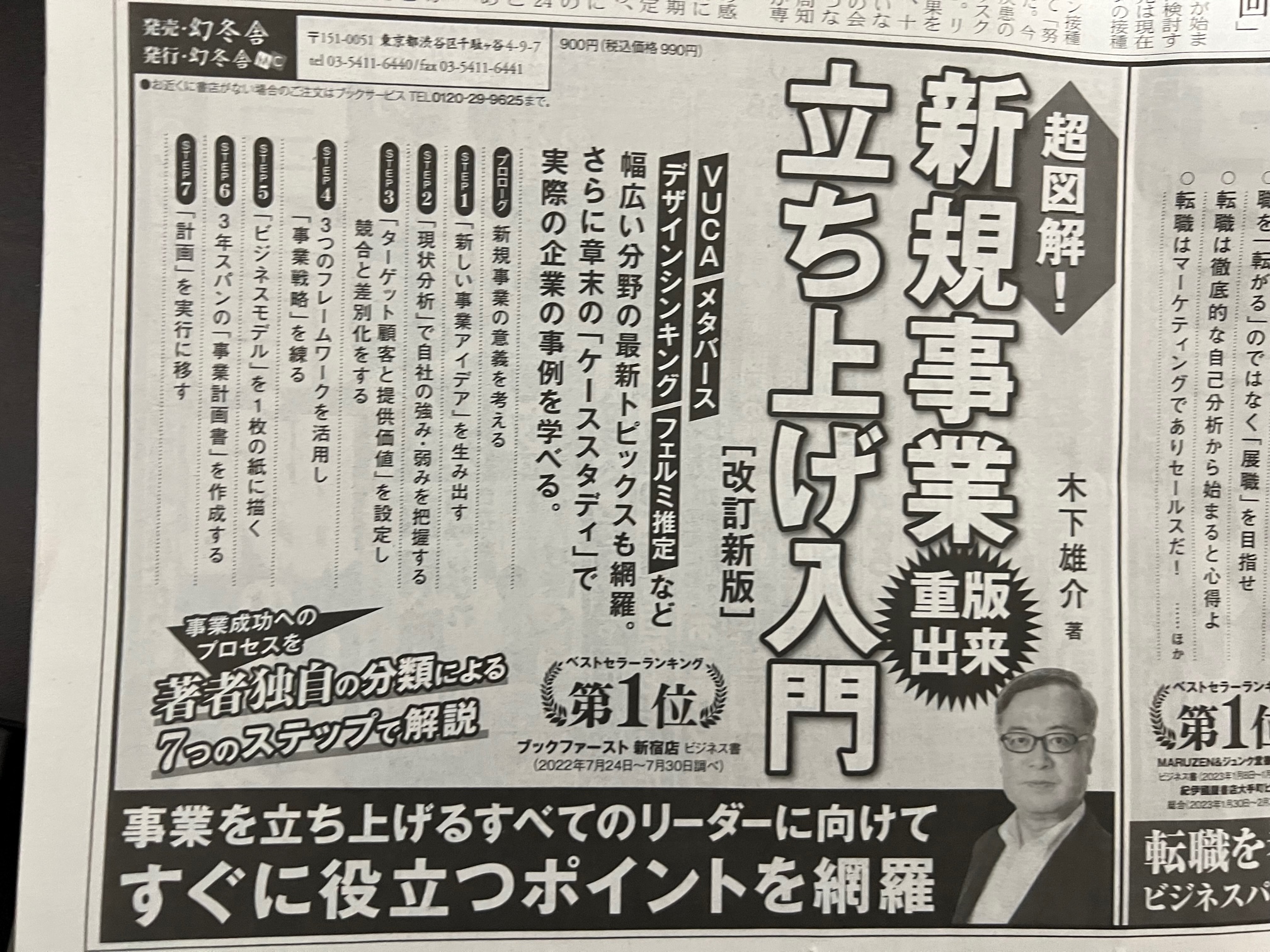 改訂新版『超図解!新規事業立ち上げ入門』(木下雄介著 幻冬舎刊)は、都内大型書店にて大規模展開中!